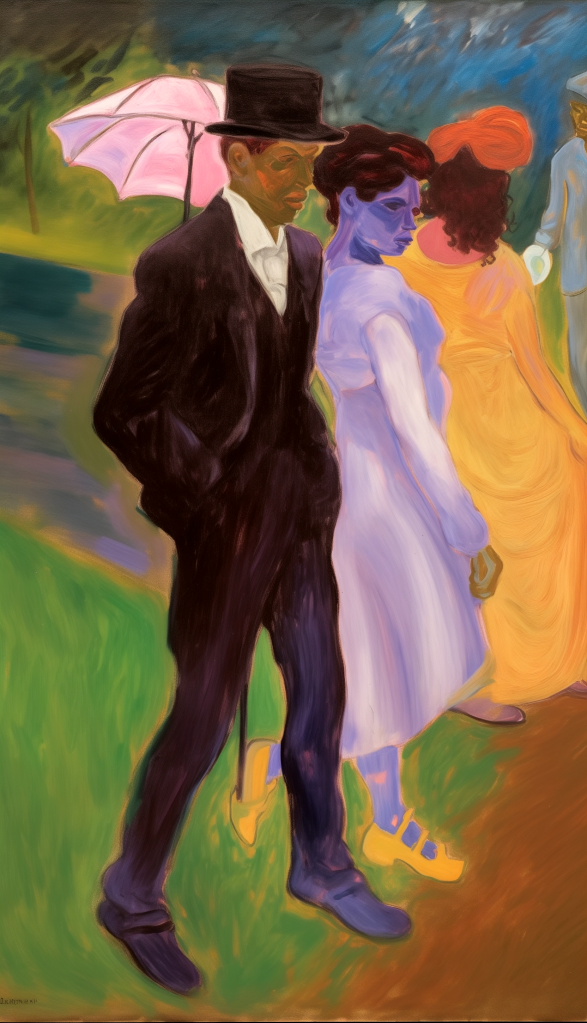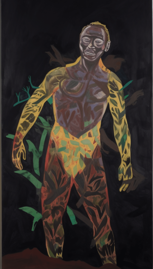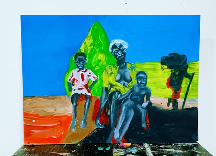 SGS: I remember one of my first loves was always history. It’s the way I make all these connections. It’s not completely reliable or true either. That I also like a lot – fabrication. And just how the brain works, theory of mind. In a way, we make these truths, histories, memories, and then we put them into some sort of coherent presentation. I think because of where the internet has taken us, I try to have all these things collapsed together. If you go to a place now, and you start talking to people about how they feel about the place where they live – on one hand, they have the history of the place and whatever the identity of the place is. So, I’m from a poor area, or there’s no jobs here, or whatever the narrative. But at the same time, they consume the same global stuff as everybody else – be it music, films, or memes. I look at this where I’m from in Malawi – I see them on the internet and they’re making jokes about – I don’t know – Jay-Z and Taylor Swift. That’s introduced quite an interesting thing in terms of how you make a painting. Does a painting live in one particular time? Can it live in different times and have complex narratives? That’s why I can play around with style – these days, with post-impressionism, but putting different bodies in there.