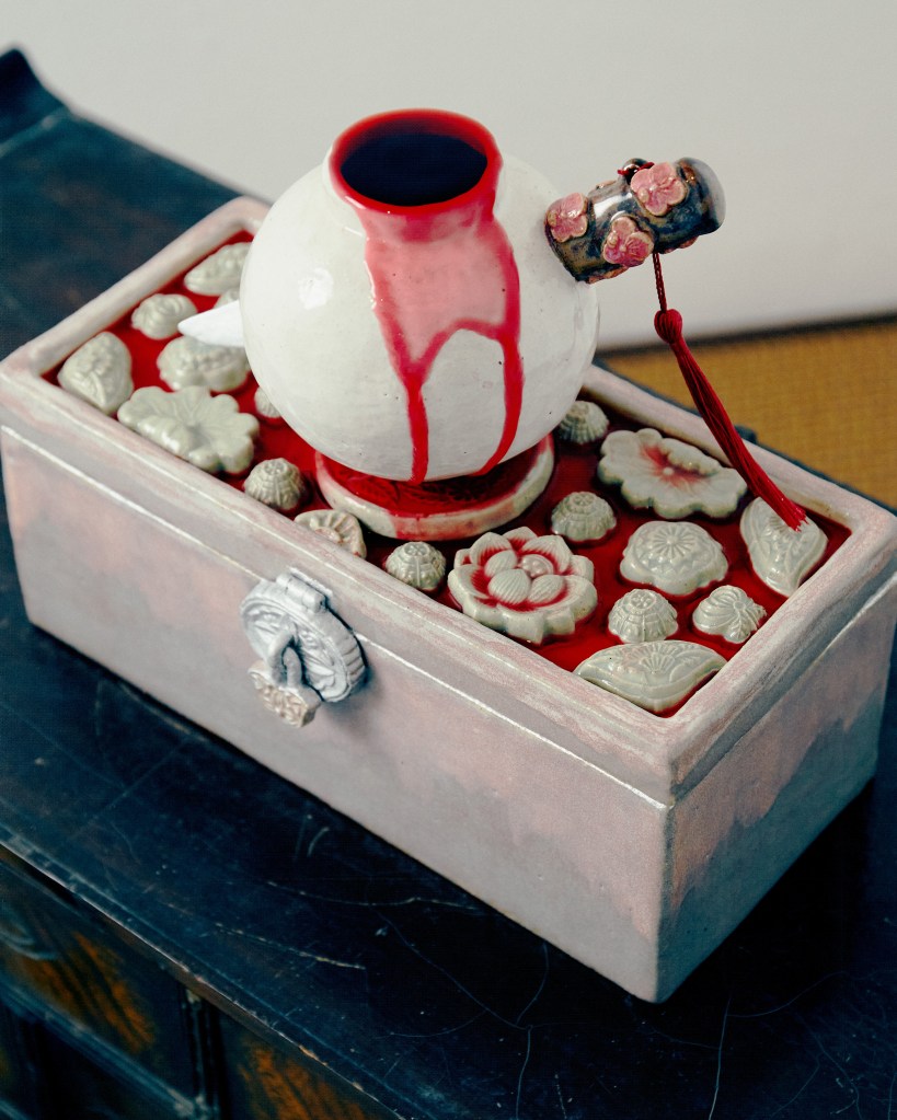 SP: Only very occasionally. With this nine-tailed fox, there is a prototype because it is the most complicated form I have ever created. There’s the clothing, and then how the clothing fits with the tails. So I needed to make a small one. The fountain, too, I made one very small. But I didn’t really follow my prototype – it was like a rough sketch in clay form. And none of the rest had sketches or prototypes. I just start. Whatever is on my mind already, I just imagine how it is going to look. Because it is quite straightforward – like, I know how a cake looks, or how bones look. With the fox, I had to twist the form of the Confucius body and add the nine tails, so those needed a bit of extra help. A cake is just a cake!