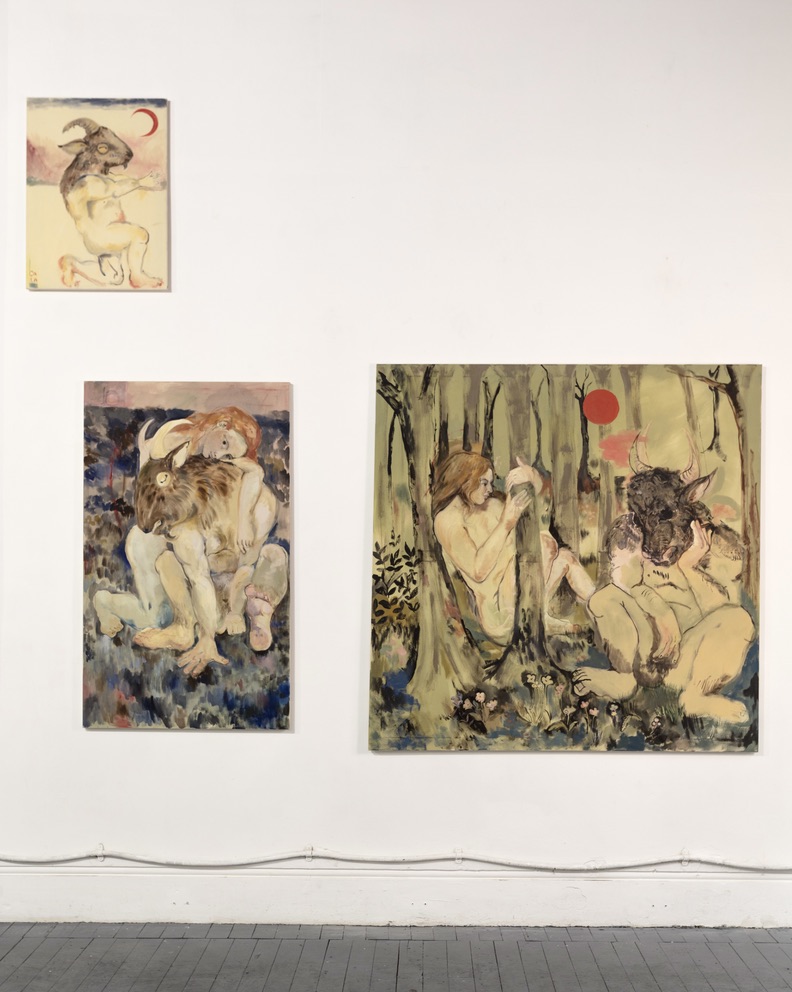 GH: Well, currently my dream is to go work in the Outer Hebrides or something! I think practically first, because I can never tell what the next thing is going to be. Like this whole body of work started from a culmination of my frustrations with central London. I had a big painting that I was working on, which was very pretty, carefully painted. And I just came in one day, really angry and frustrated, and I painted the Minotaur smoking a cigarette. Just looking really grumpy- he’s showing it all, he’s naked, and he’s angry. And I was like, oh, this is something. This feels exciting.